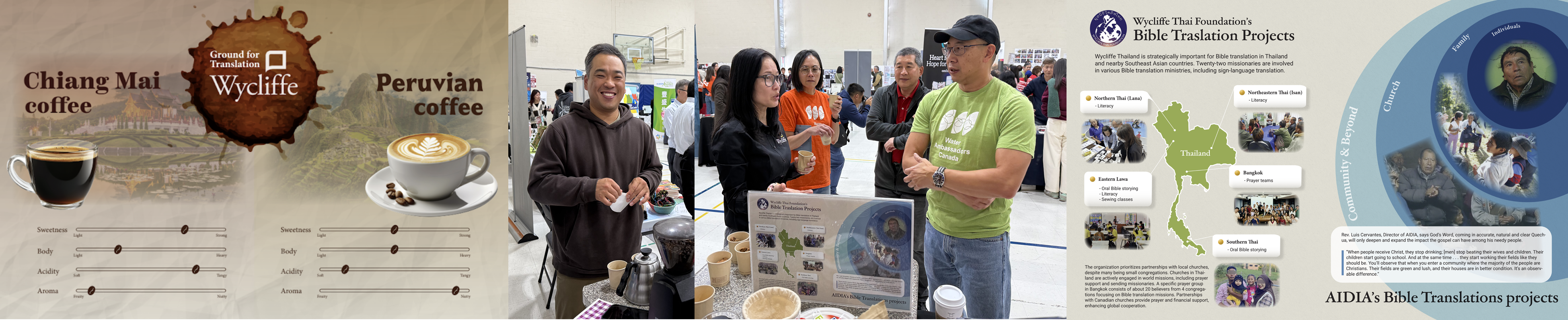 On October 25th, during the Chinese Evangelical Church's Mission Week event, we set up a booth and held a coffee tasting session to raise awareness about Bible translation missions. With the help of Pastor Choi Kyung-jin of We Are Church, who is a coffee barista, we ground and brewed coffee beans brought from Chiang Mai and Peru. We offered tastings to booth visitors and shared about the ongoing Bible translation missions in those regions.